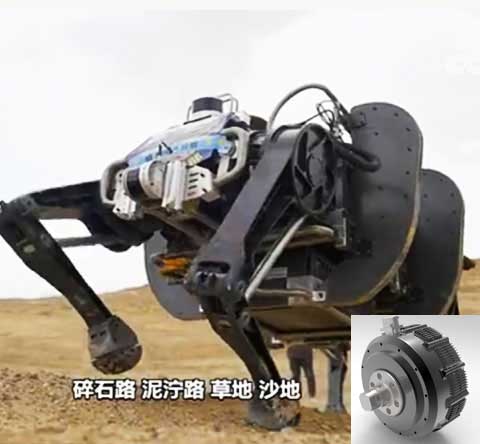 全電驅動12自由度大型仿生機器人關節(jié),單電機功率6kW,峰值扭矩1200Nm,輸出轉速120rpm,單電機重量10kg.